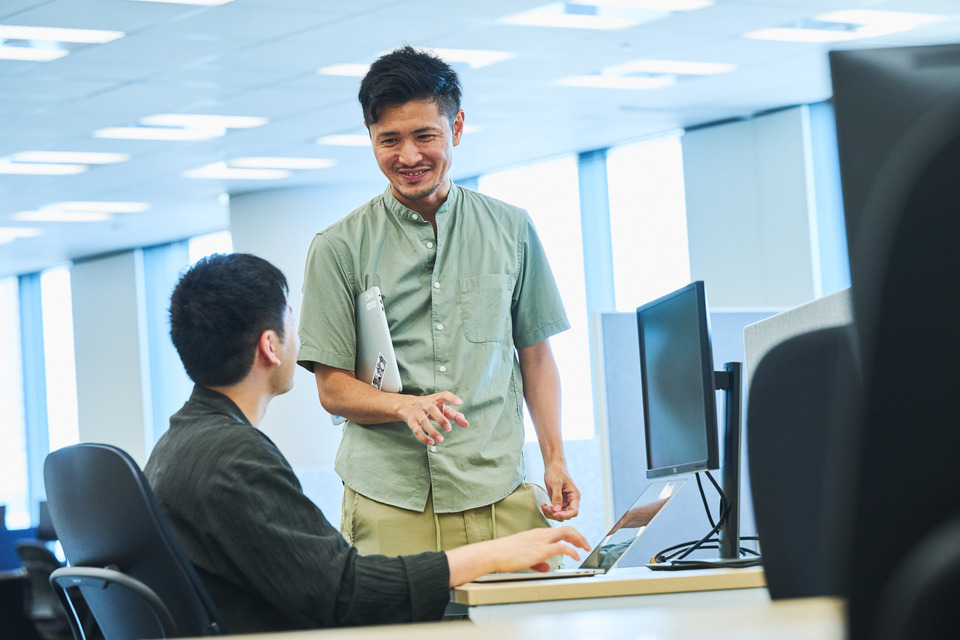 上司からの目線ではなく、同僚エンジニアからの目線でも評価されるため、コードの書き方やプロジェクトの進め方、チーム内での立ち振る舞いなど、自身の強み、よい点を評価される仕組みを目指しています。