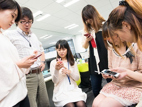 手を挙げれば領域を超えて何でも挑戦できる会社です。アプリをみんなでチェックしながらも、新しいアイデアが次々と飛び交います。