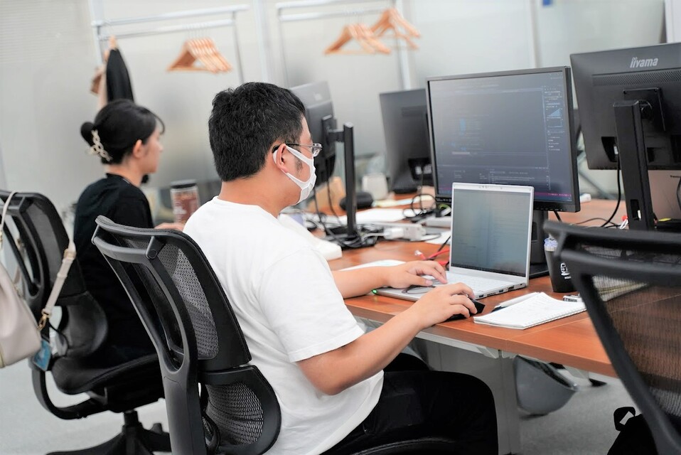 当社の特徴は、システム全体の設計やコーディングにこだわりを持つエンジニアが多く、自社内で設計からコーディングまでを行っていることです。