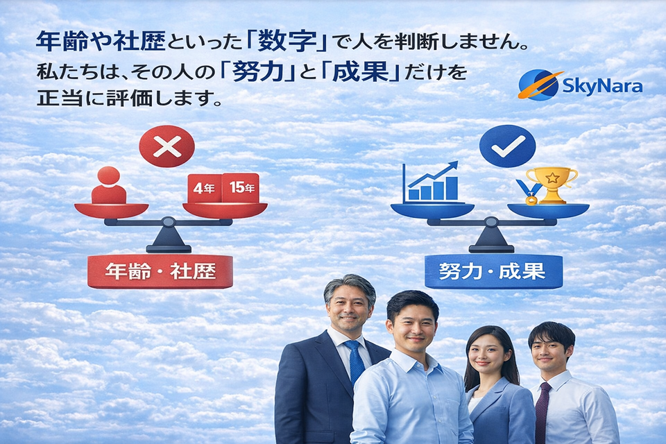 年齢や社歴といった「数字」で人を判断しません。私たちは、その人の「努力」と「成果」だけを正当に評価します。