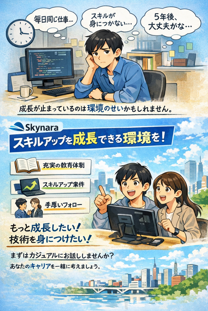 スキルアップ・キャリアアップを本気で目指す方へ。成長できる環境がここにあります。次のステージを目指すなら、ぜひ当社へ。