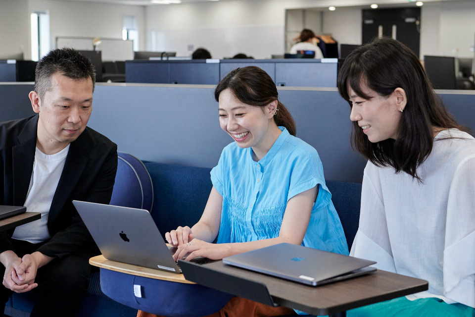 「100人100通りの働き方」を目指しています。フルリモート制度、複業、最長6年間の育児休暇、子連れ出勤制度のほか、キャリアの検討や現在の業務へ生かすことを目的に、他部門に一時的に兼務・異動ができる制度「大人の体験入部」や、自分の「できること」と今後の「やりたいこと」をkintoneに記入して全社に公開し、メンバーとチームのマッチングを検討できる制度「Myキャリ」など、ユニークな制度も充実しており、ひとりひとりが輝ける職場づくりをおこなっています。